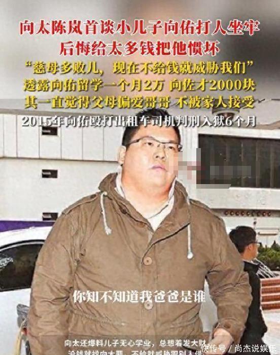 [免责声明]文章的时间、过程、图片均来自于网络,文章旨在传播正能量,均无低俗等不良引导,请观众勿对号入座,并上升到人身攻击等方面。观众理性看待本事件,切勿留下主观臆断的恶意评论,互联网不是法外之地。本文如若真实性存在争议、事件版权或图片侵权问题,请及时联系作者,我们将予以删除。信息来源:百度百科-向太陈岚、向佑、向佐抖音——向太陈岚个人动态向佑涉嫌殴打出租车司机 并恐吓:我爸是向华强.分号文.向太首次公开详谈次子向佑:一生最后悔就是没早懂慈母多败儿,“他不像兄长向佐那样有自律意识”;此前向佑被判入狱6个月.百家号